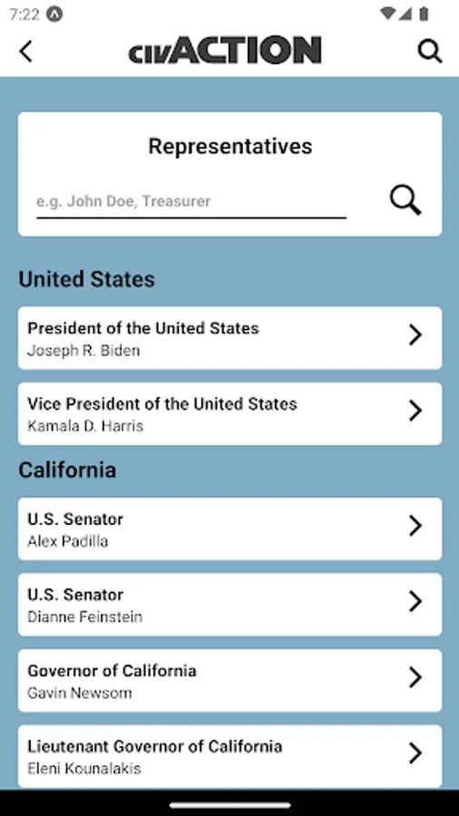 Taking action can be intimidating. civACTION seeks to encourage users to understand issues and to learn how to be effective and constructive. civACTION is designed to help you take smaller actions first, and then gradually, as you gain confidence, take larger ones. civACTION can provide information on officials at all levels of government and can help you connect directly with them on issues that matter to you. The app will provide scripts for making calls, sample emails to send, and resources to inform you about issues so your communications with your leaders is more targeted, productive, and effective.