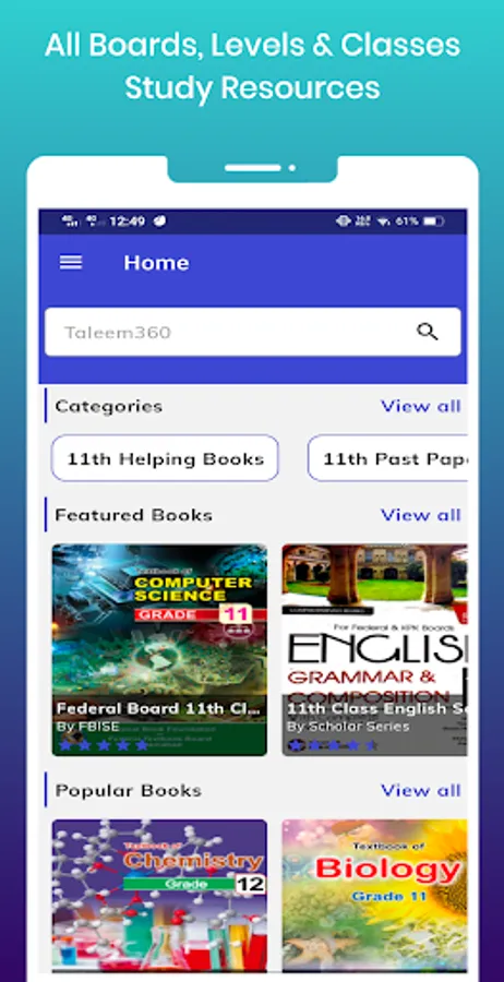Taleem360 is an educational app which provides vast collection of pdf books, notes and study resources for all classes, all levels and all educational boards.