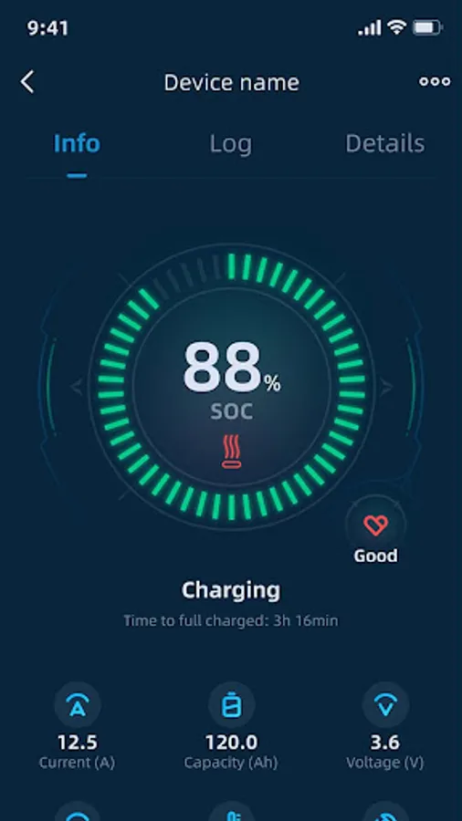 1. Display real-time SOC, voltage, current, capacity, temperature, and other parameter values, and display them in the form of instrument panels and numbers;