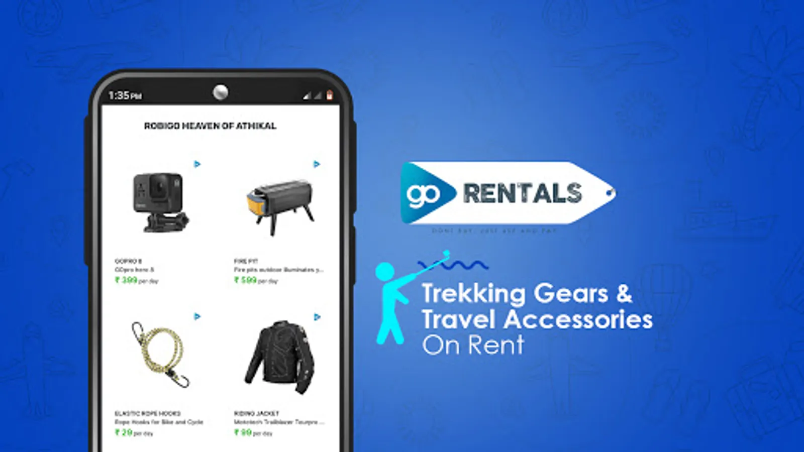 Book holiday packages,events ,rental cars,Bikes,trekking gears,camping equipments & activities.