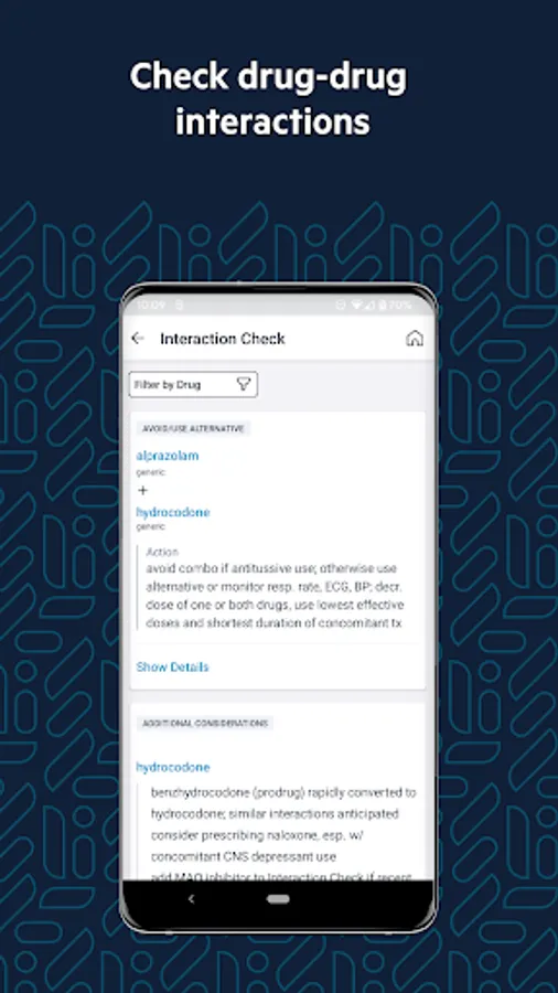 - Drug interaction checker: prevent harmful interactions between up to 30 brand, generic, OTC, or alternative drugs