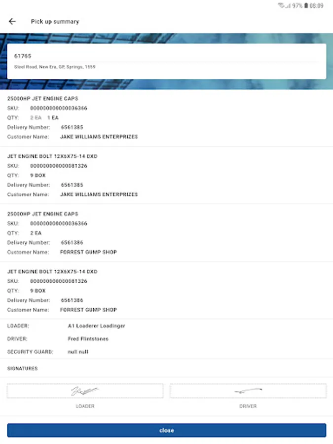 Saint Gobain ePOD app for Saint Gobain deliveries with electronic proof of delivery submission, customer signature, rejection capture with photos.