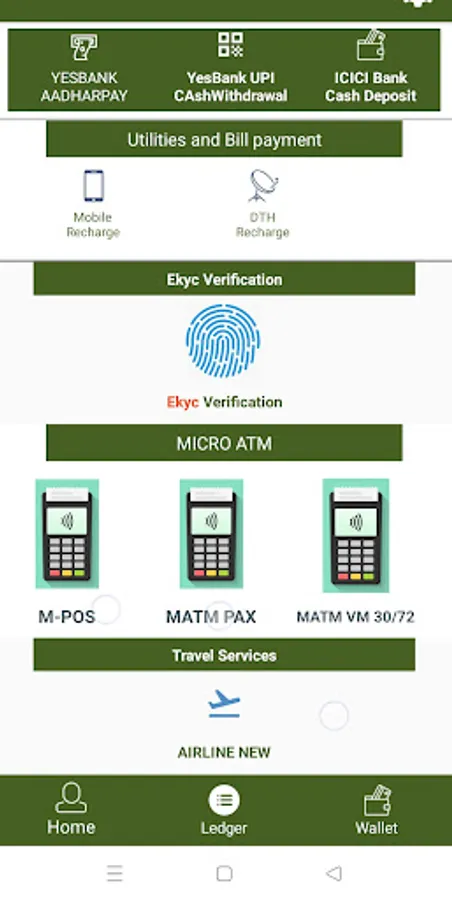 MICRO ATM Swiping machine, Money Transfer, Mobile & DTH recharges, UTI Pancard, Aadhar Pay, QR code withdrawal, BBPS-Electricity, Gas, water, Insurance, fastag payment and other bill payments