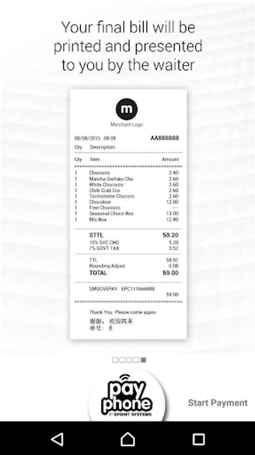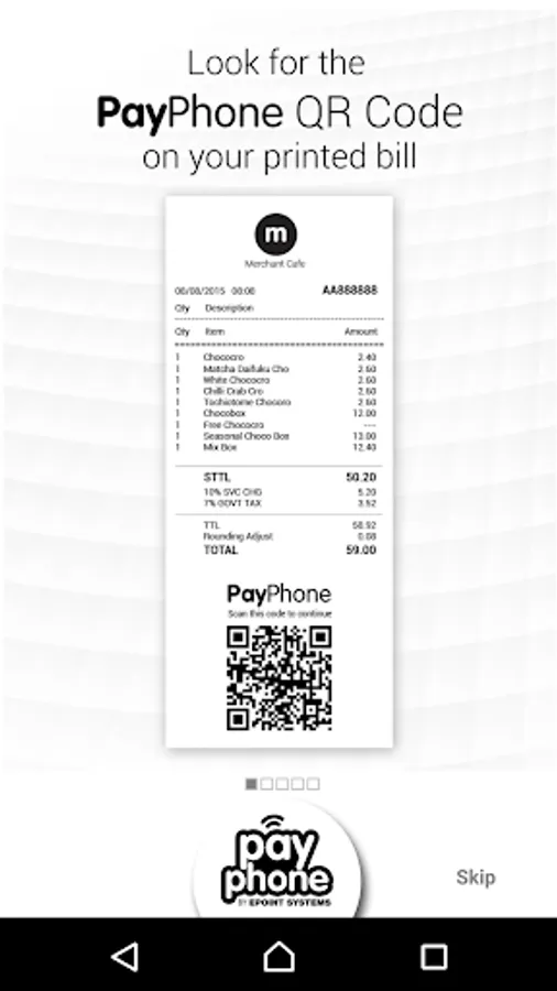 PAYPhone lets you scan a QRCode to make payment for your restaurant bill at the comfort of your table. Its as simple as 1,2,3.
