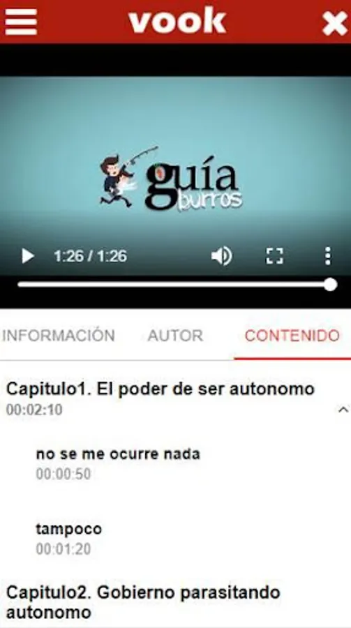 A format that allows access to all content without reading the books. VOOKs work as audiobooks: you can listen to the announcer while doing other activities or, like videobooks, you can follow the different videos where, supported by infographics, a presenter narrates the content of these books.