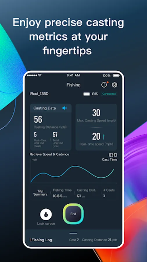 On the water, iReel employs highly accurate motion capture sensors in the spool assembly to provide anglers with precise casting metrics, including the number of casts made, average distance, farthest cast, retrieve speed, and more. All the data is at your fingertip once your iReel is connected to the KastKing app.