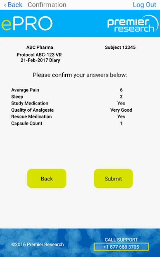 This app is used to collect patient reported outcomes during the conduct of clinical trials.
