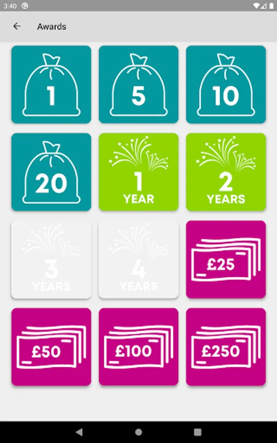 Charity retailers can pick up to 12 ‘tiles’ which range from carrying a scannable gift aid donor card on your phone, to browsing volunteering opportunities in those shops nearest to you. The app knows all your gift aid donation history and unlocks digital award badges when sales of your items reach certain thresholds, such as raising £100 or making 10 donations.
