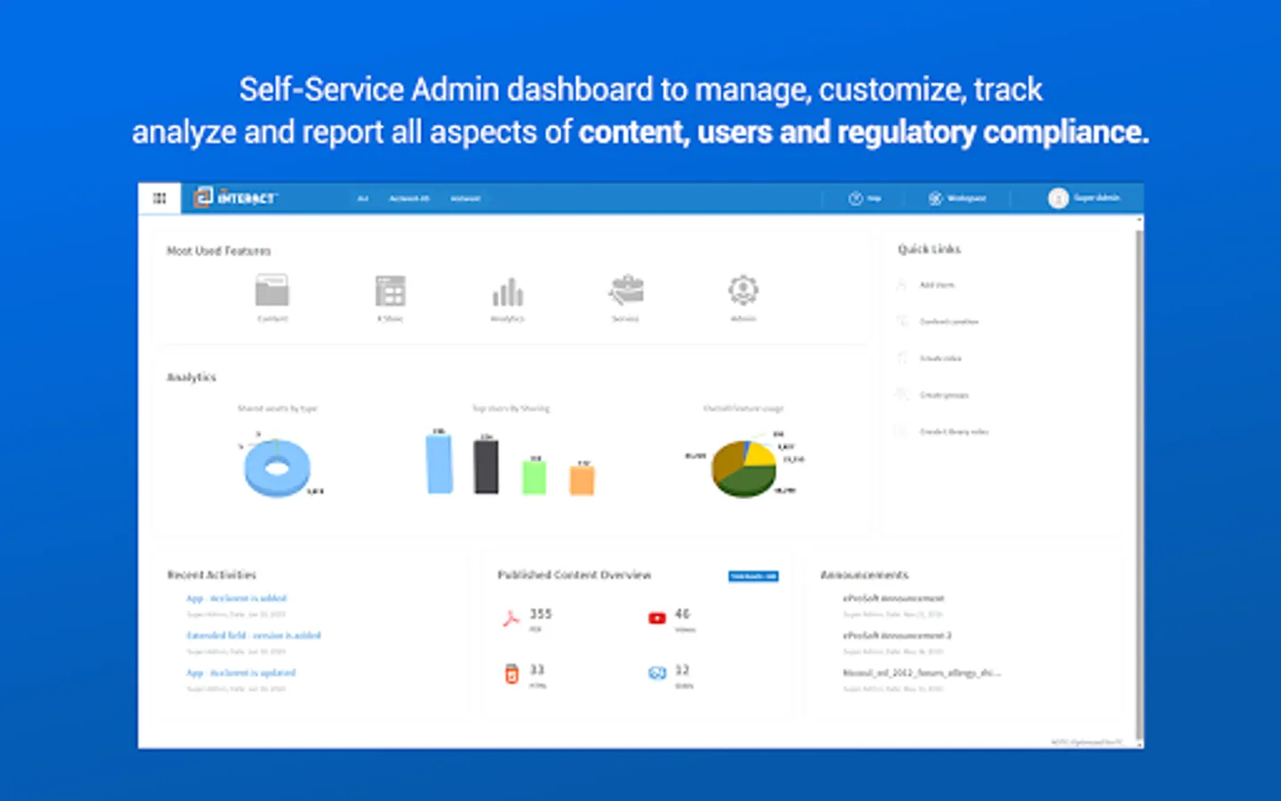 • Gain insight on top rated and top used content by all users