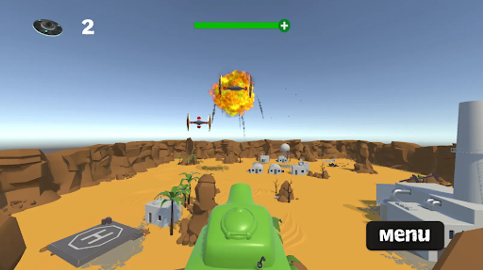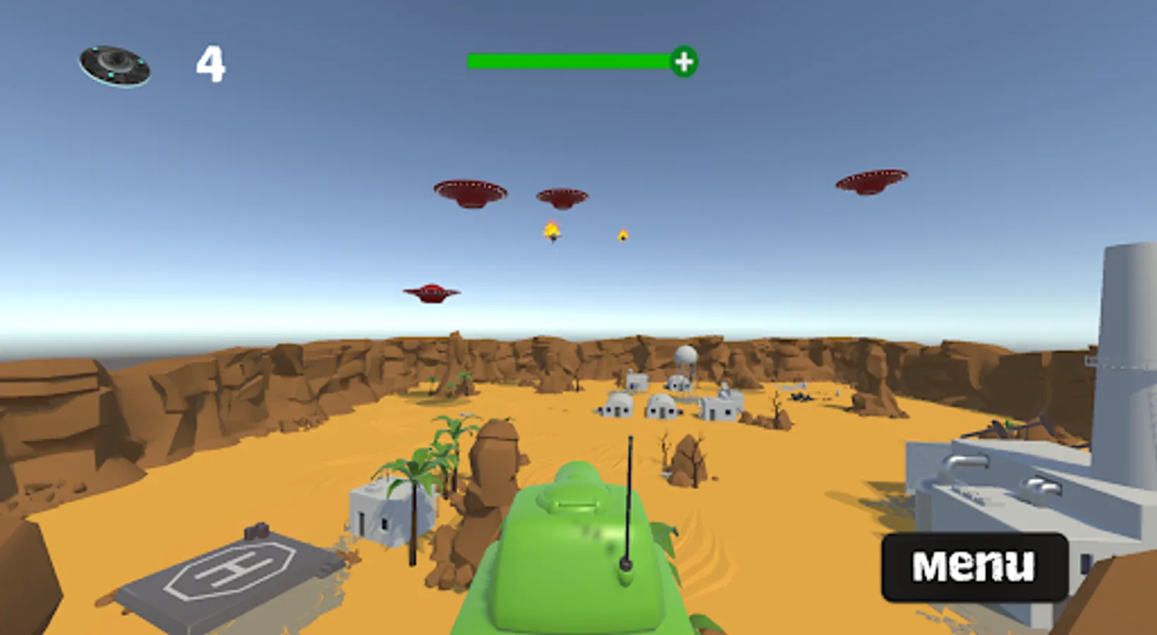 Use your Cannon in your tank to destroy the alien OVNI martians that are around the area.
