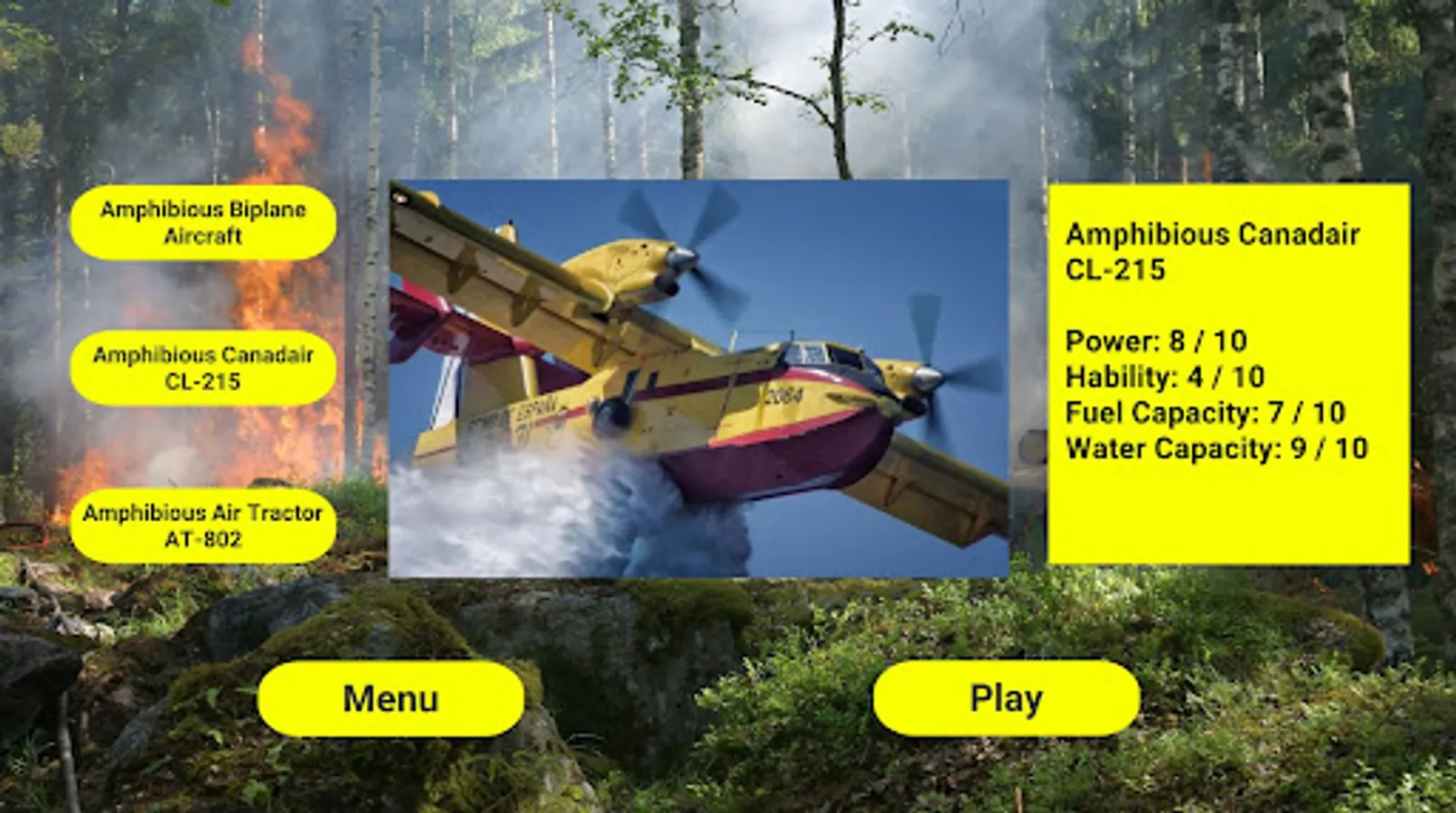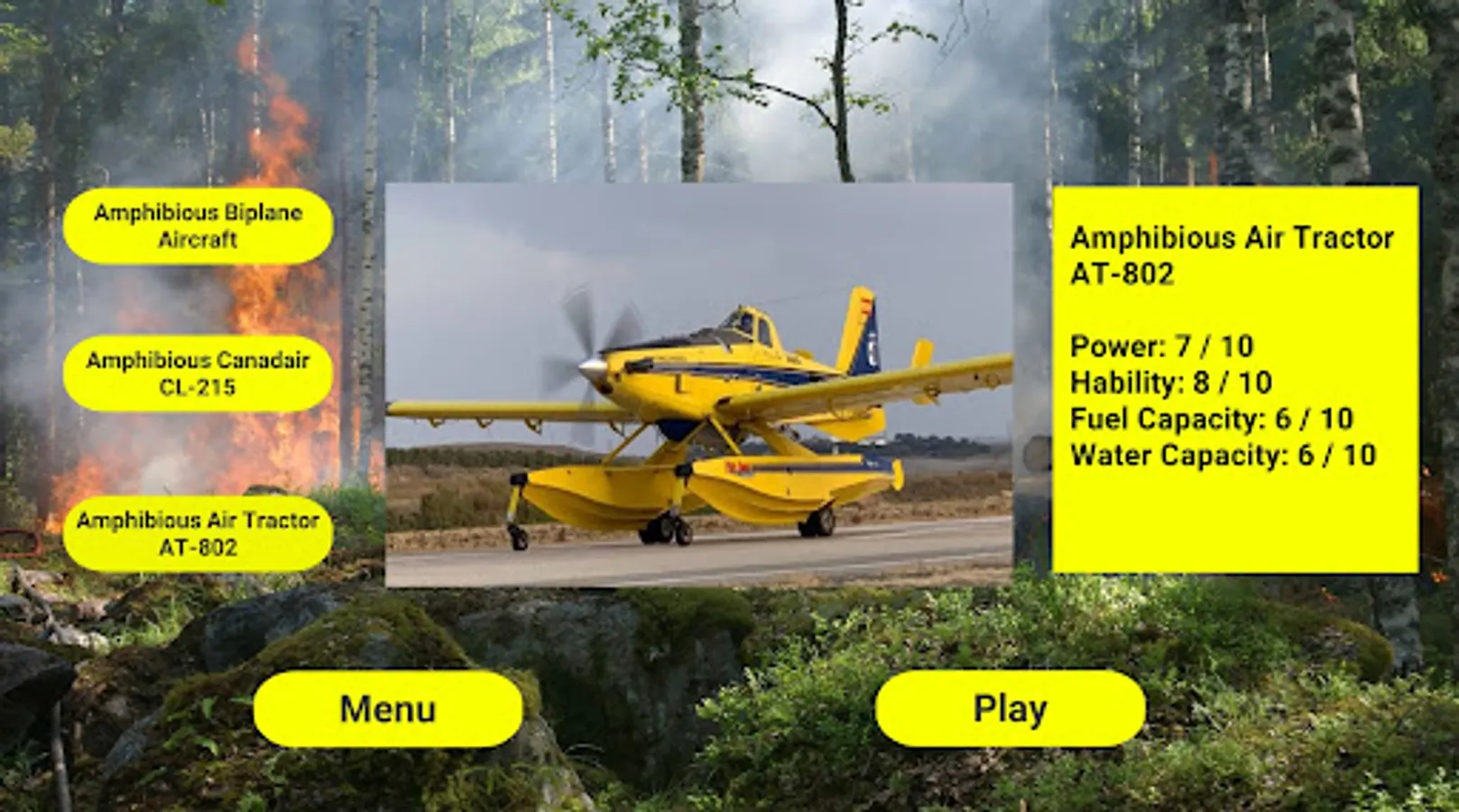 Choose from three aircraft types and use your skill to search the forest and eliminate the wildfire.