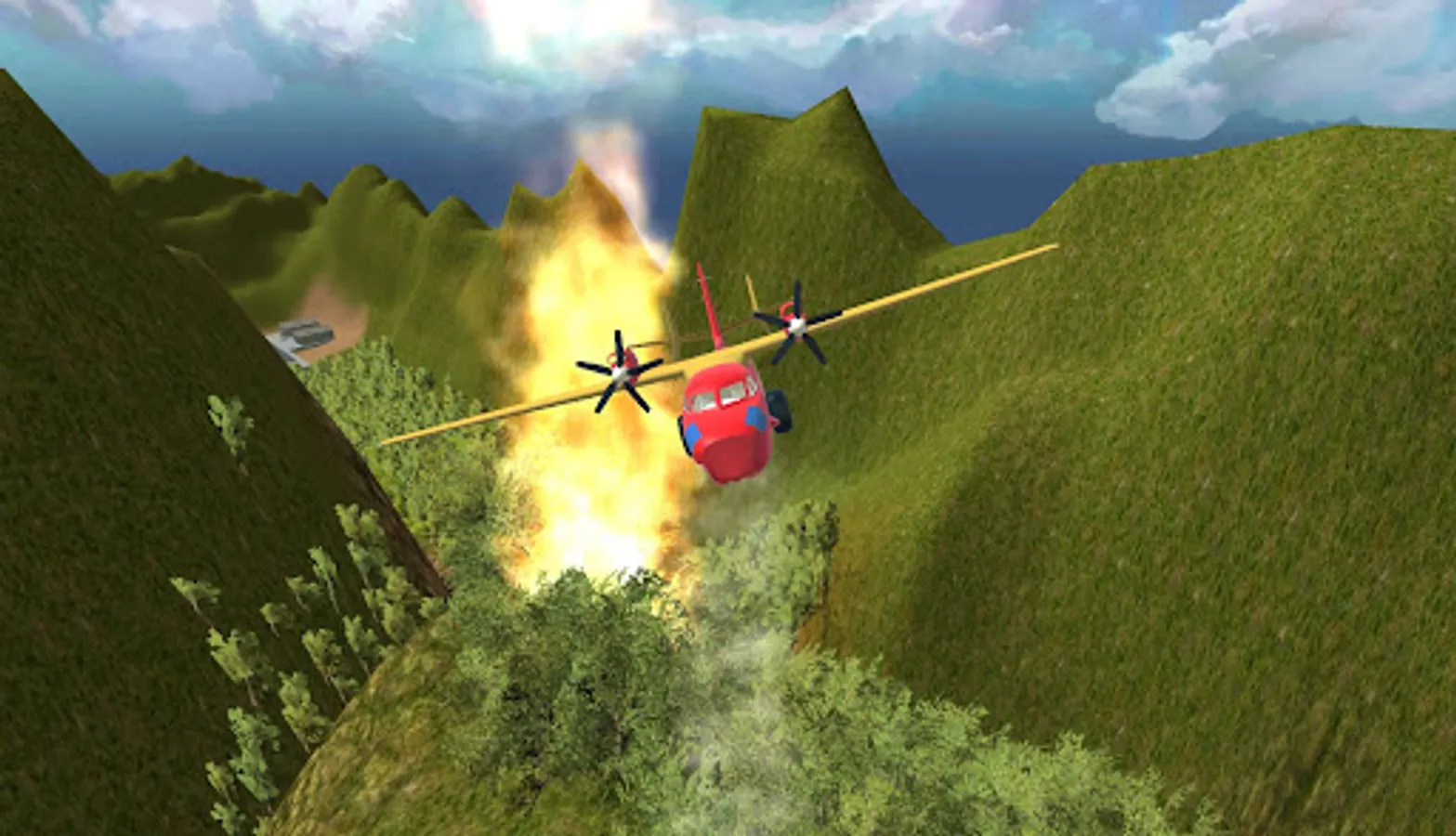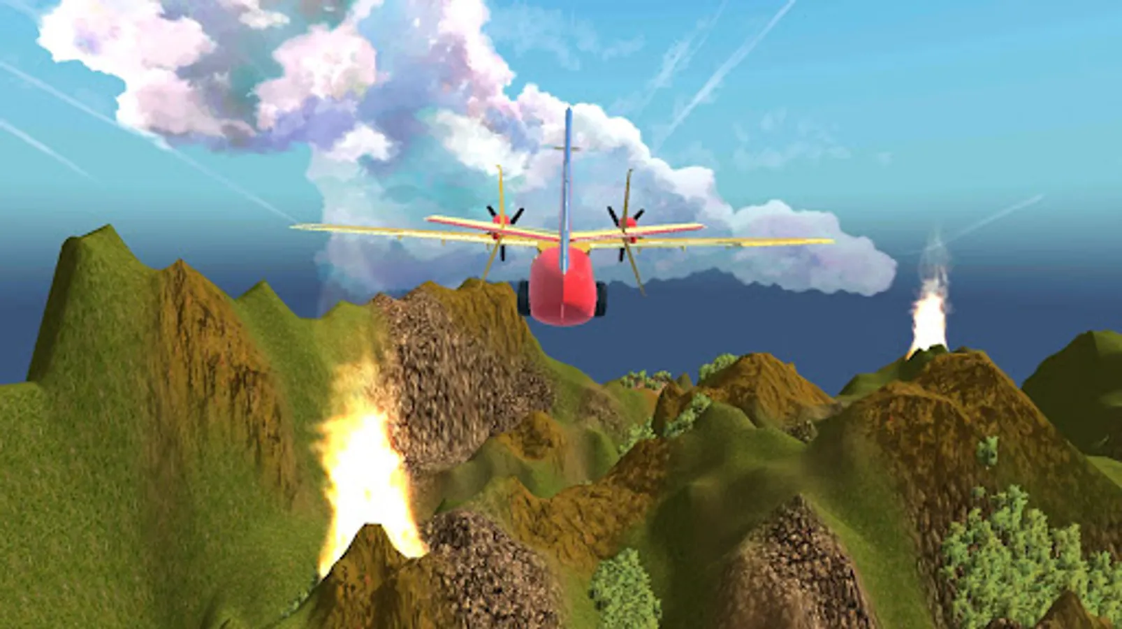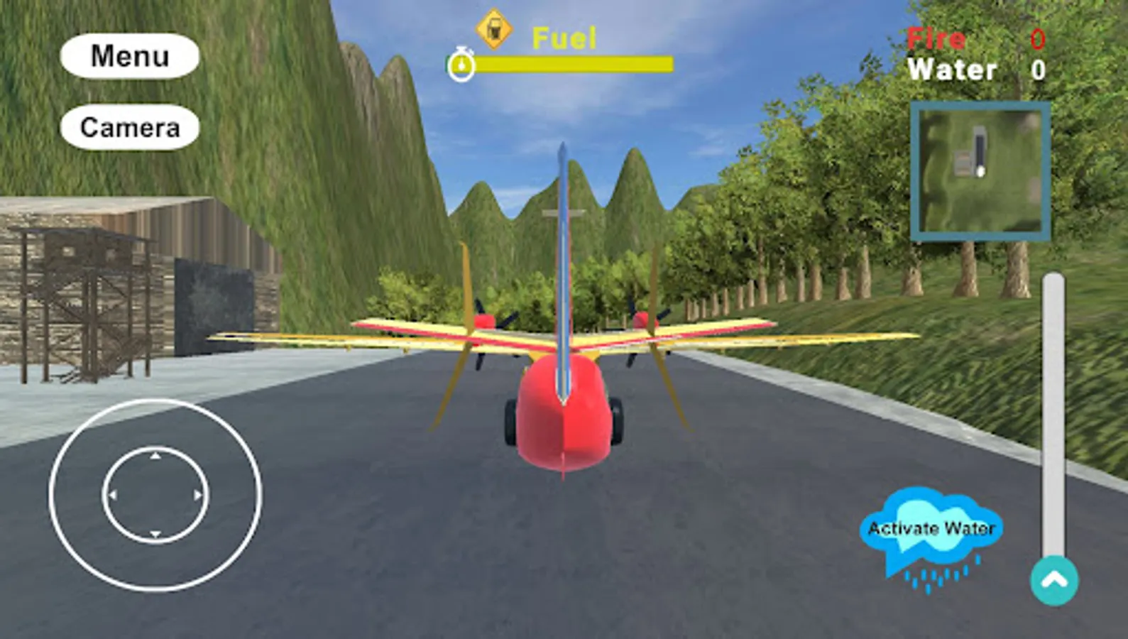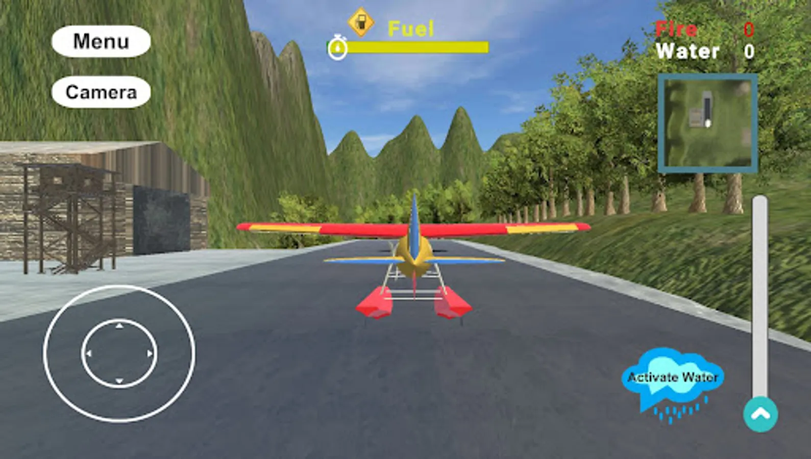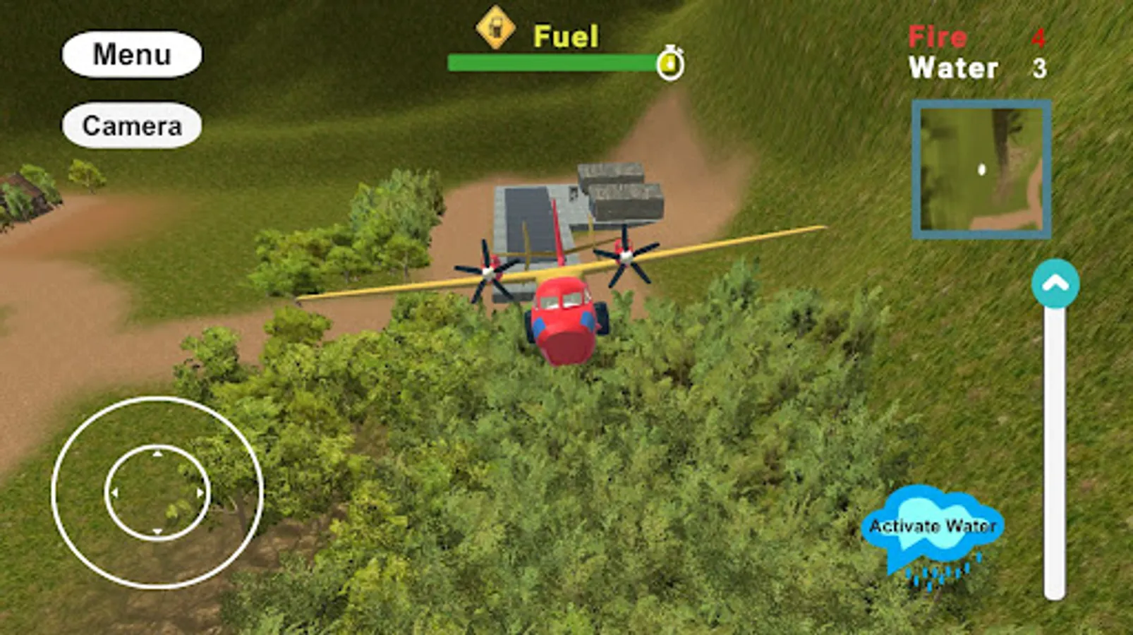 Play three scenarios where you can travel around the area searching for wildfire and eliminating with the water. You can use the lake around you to fill the airplane tank.