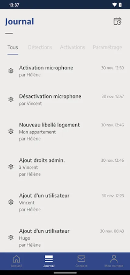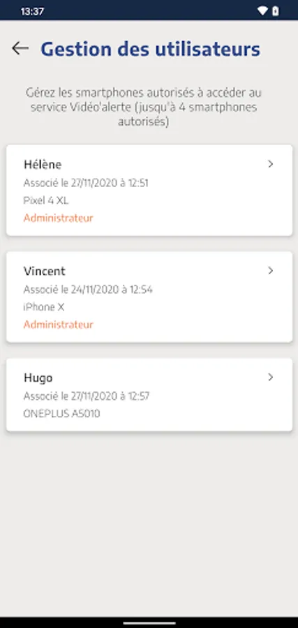 The Video Alert service allows you to create up to 4 accounts on the mobile application, with 2 possible profiles: up to 2 administrator profiles and 2 user profiles.