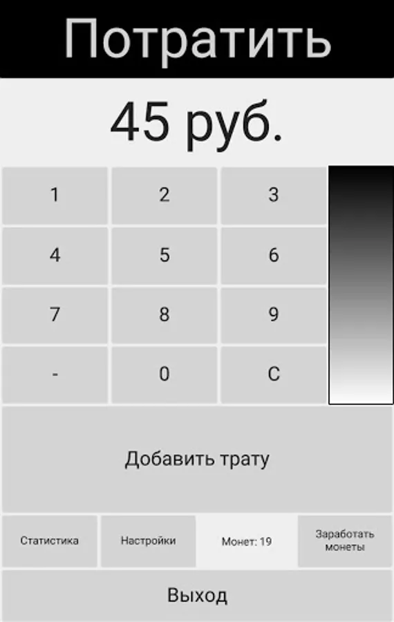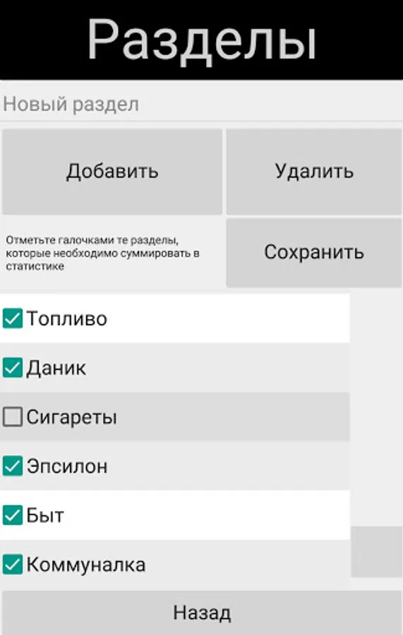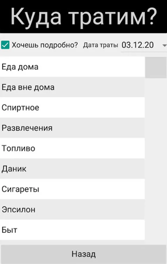 Convenient and simple application with unobtrusive advertising for financial accounting. Nothing extra. Unlimited number of categories. Selection of categories for summation.