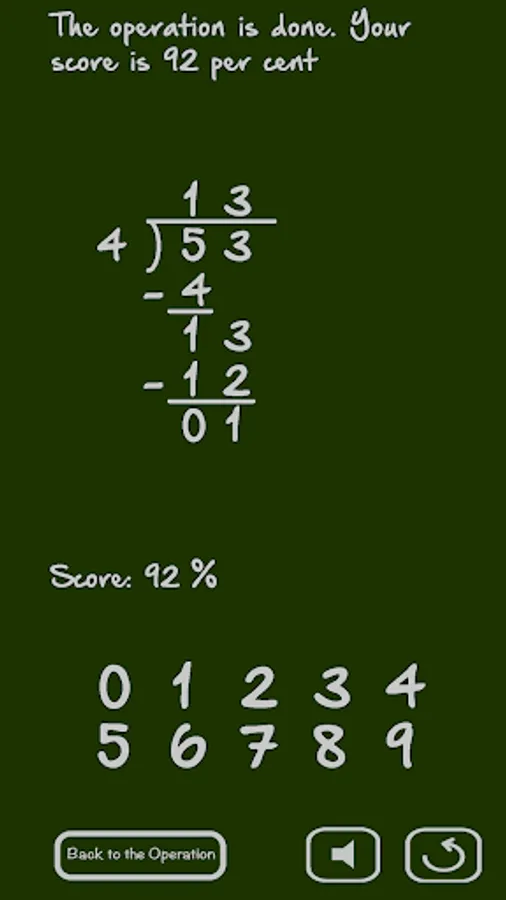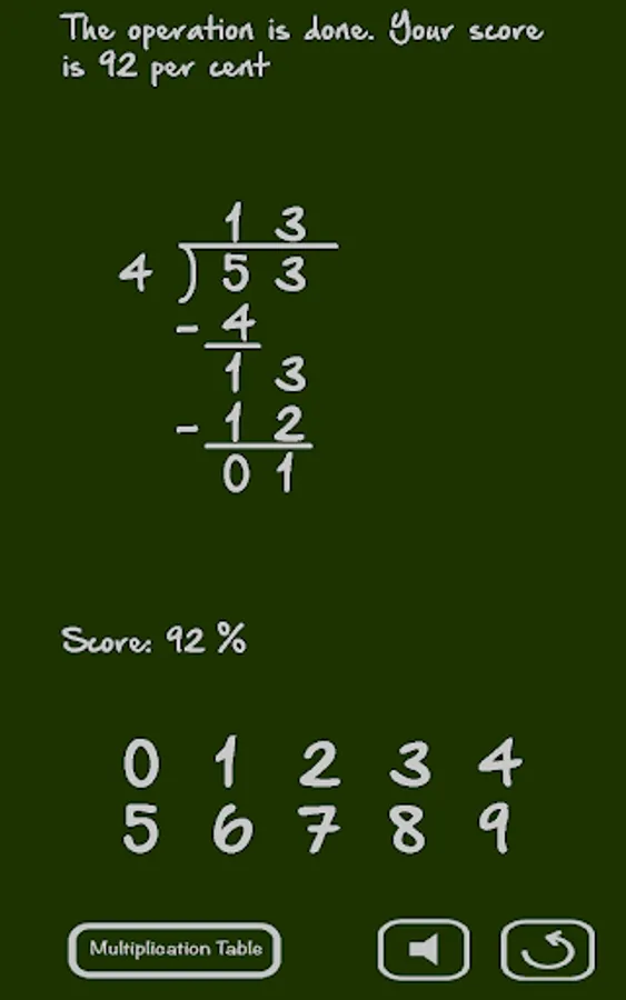 The application computes a score from time and mistakes during the division. This gives you motivation to train and let you see the progression in the long division.