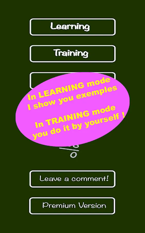 Note: The application uses vocal synthesis (it speaks) to comment the division during math exercises. On some devices, it will propose to you to install upgrades of vocal synthesis if you want to get better diction quality.
