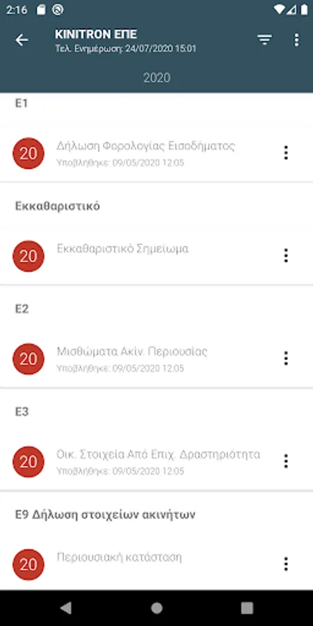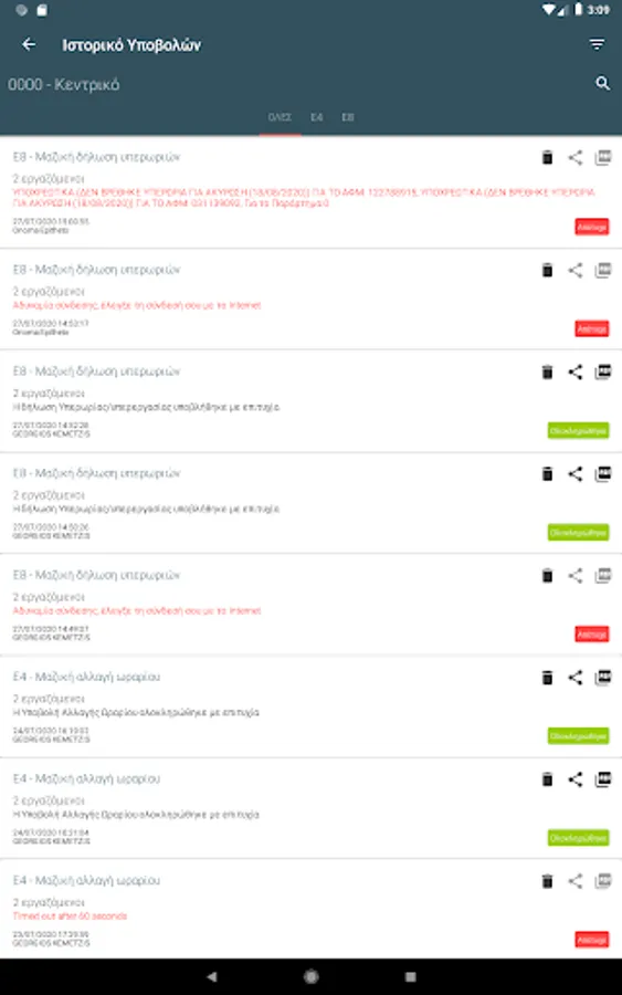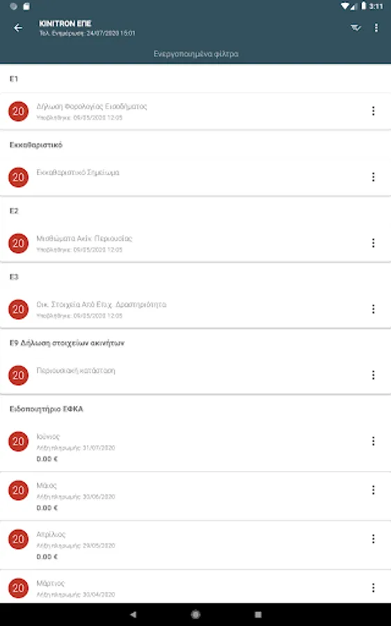 - Library of Declarations: download of the forms E1, E2 of the obligor / spouse, E3, E9, N, Φ2, as well as of the settlement note of contributions and fees of tradesmen without requiring a link to the page of AADE