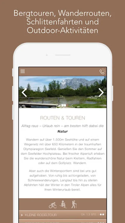 The app includes not only information on hiking, cycling and mountain tours in the region, including interesting facts about the Wellness Schoenruh and our main Rochester Hotel Haus Stefanie. In this way the app for an unforgettable wellness holiday in Seefeld provides.
