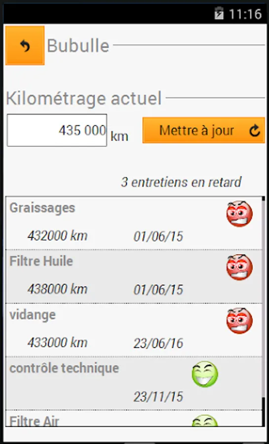 Manage the maintenance of your vehicle: from the mileage and the current date, CheckMyCar alert you about the various interviews ahead or behind.