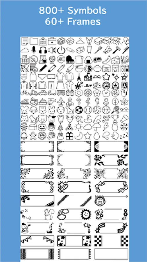 - Rich pre-install contents: Create and design your labels with a wide variety of symbols, frames, and shapes.