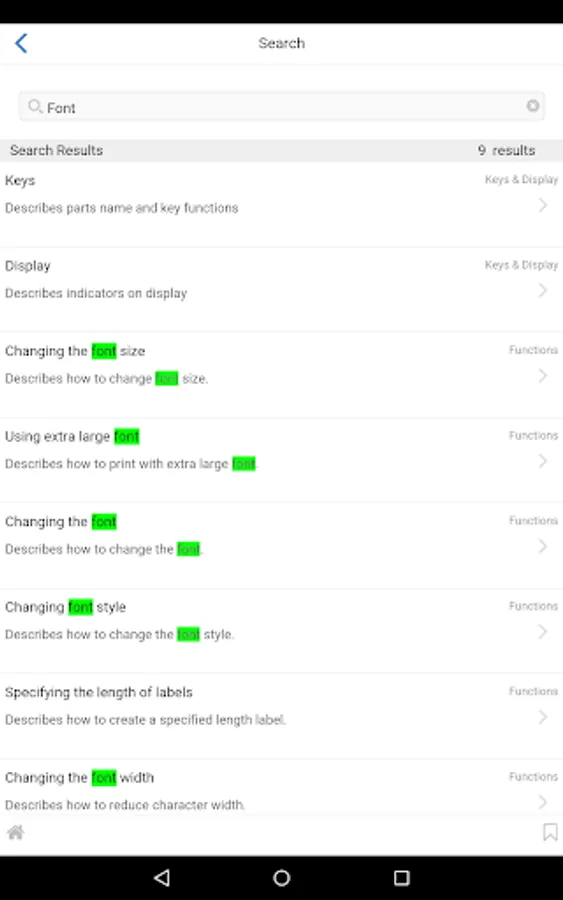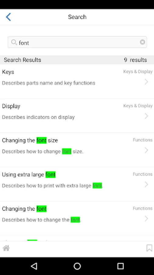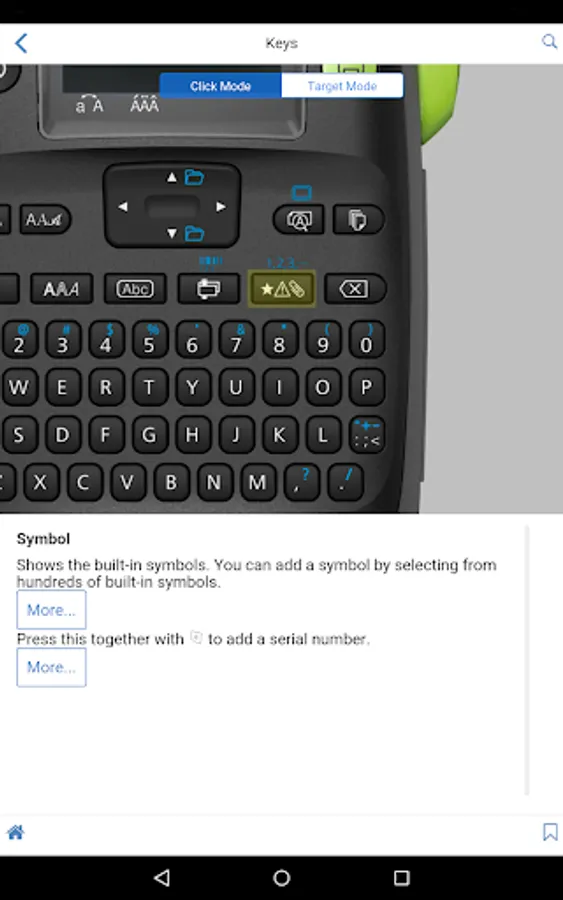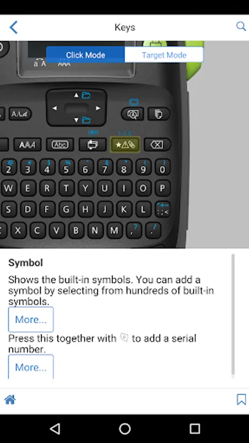 - Keys & Display: shows individual functions by touching the keys and display indication. If you tap "More", it links to relevant functions.