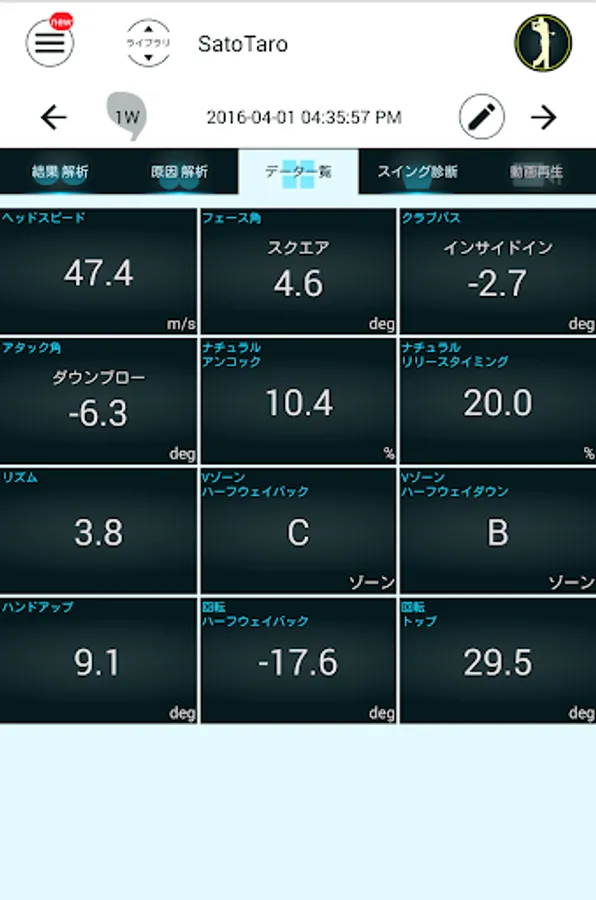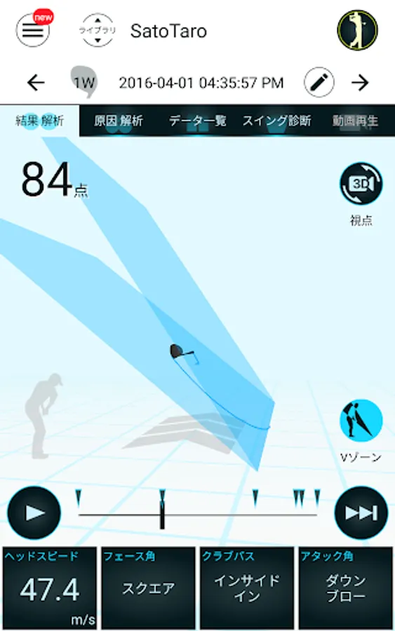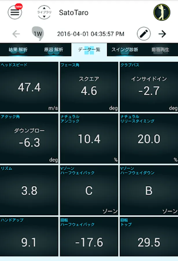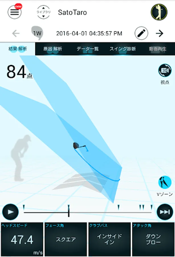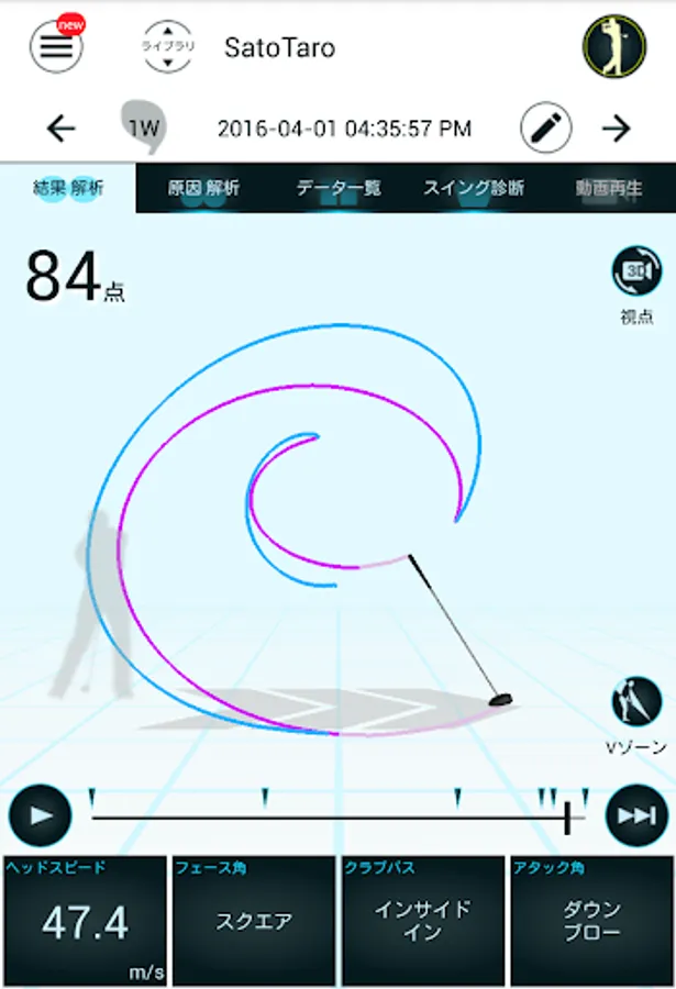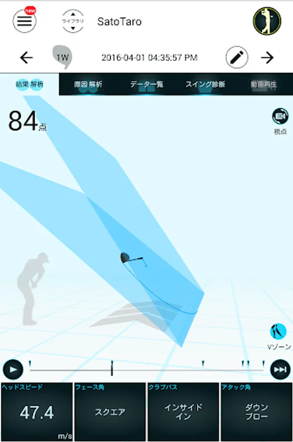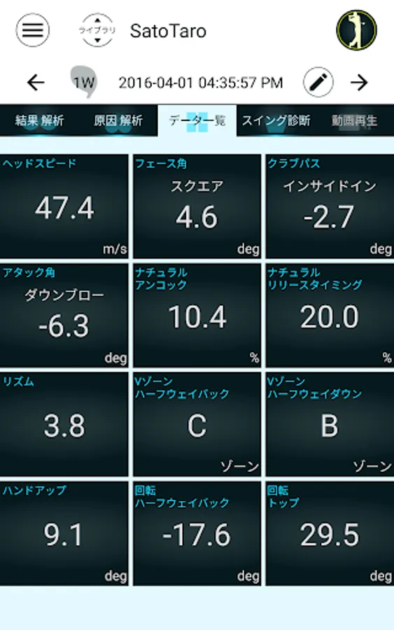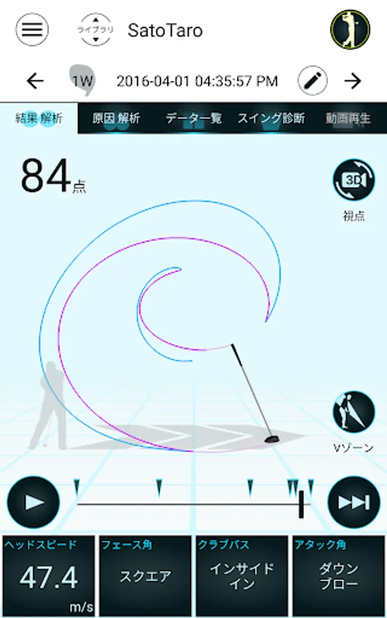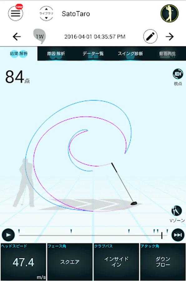 -動画再生 : スイング計測時に撮影されたスイング動画を再生することができます。クラブの動きと体の動きを確認して、より効率的な上達が目指せます。