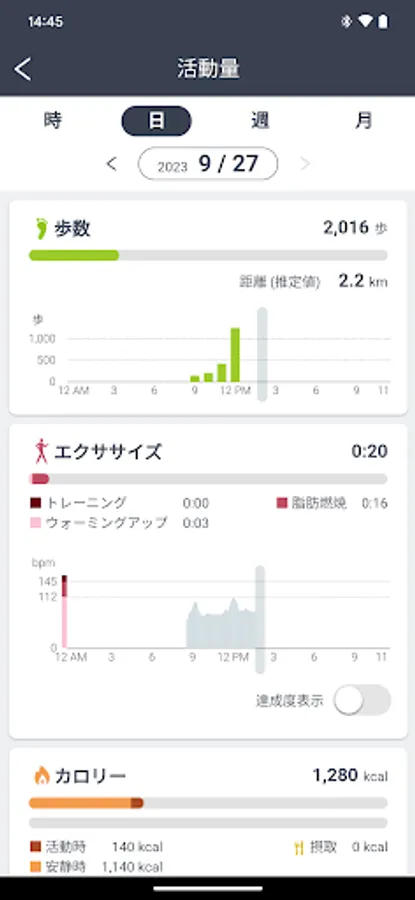 RevUp is an application that allows you to check daily activity data (exercise time, number of steps, calories, sleep) on the target wrist device.