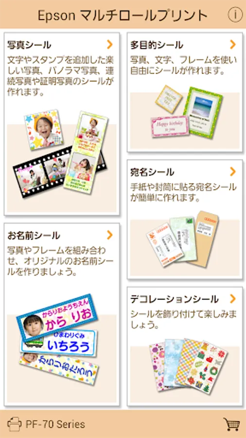 Epson Multi Roll Printing is a special application for PF-70 / PF-71, which can create various stickers using roll paper. It is possible to create and print a photo seal like PRINCRA, a long photo such as panorama, a name sticker with a face photo, an address sticker with an address and name, and a decoration seal that can be decorated fashionably I can do it.