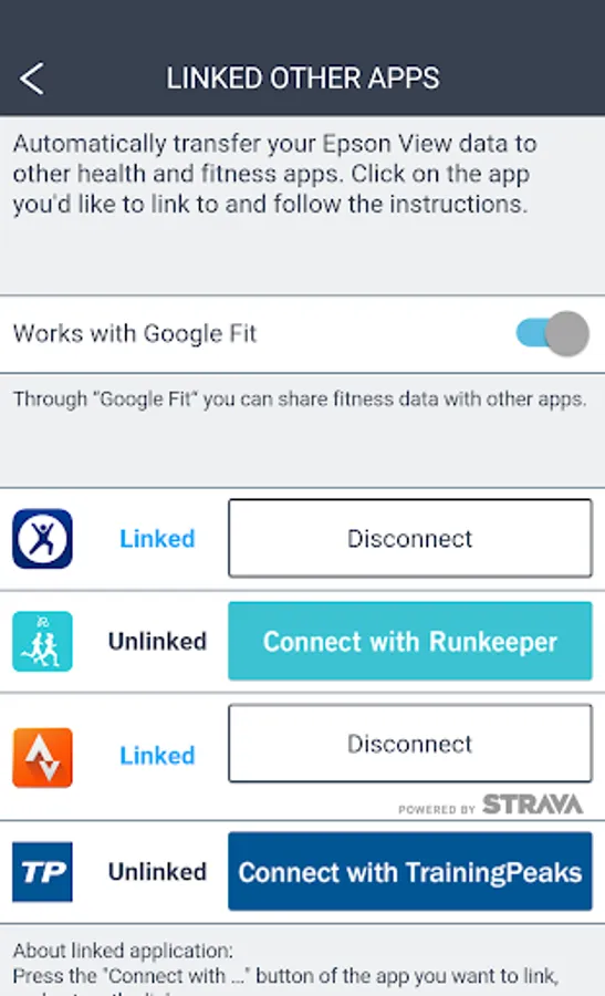 This application allows you to review your activity data by pairing with an Epson GPS watch (GPS Sports Monitor, hereafter referred to as watch).