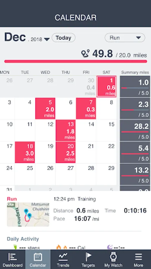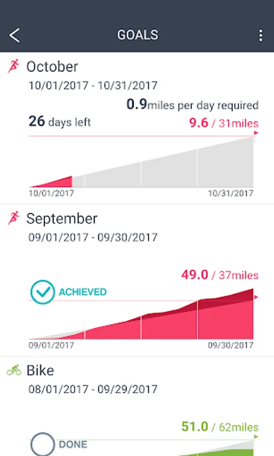 - You can set weekly or monthly running goals and view your level of progress towards these goals.