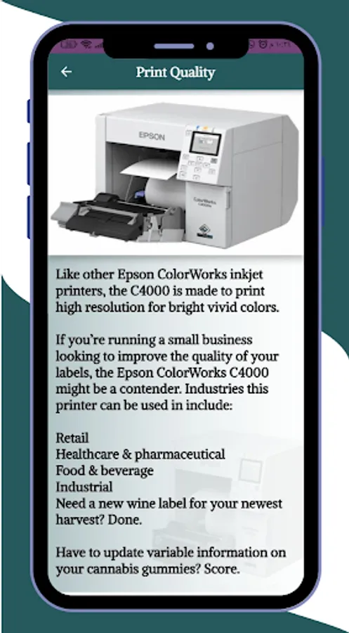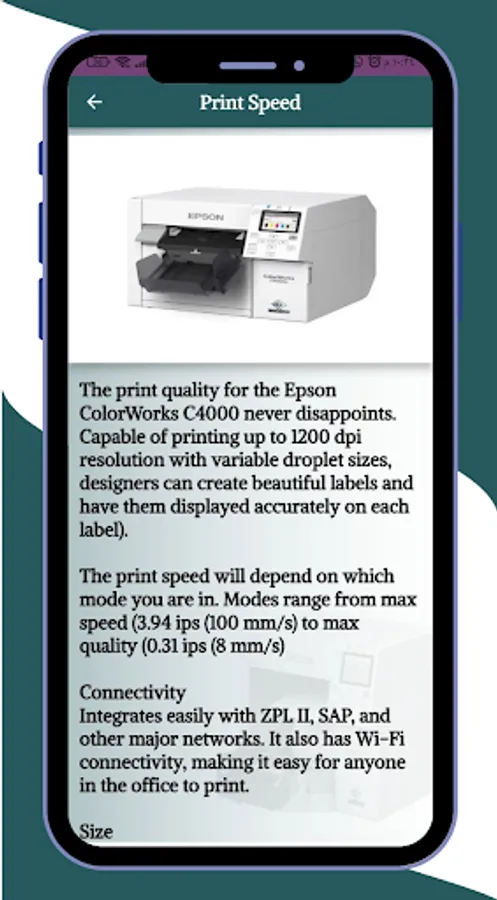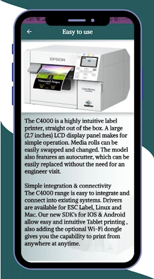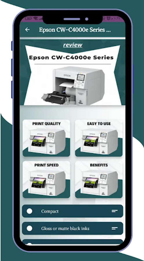 Epson CW-C4000e Series Guide app contains many information and features of Epson CW-C4000e Series Printer that you can get clearly and easily.