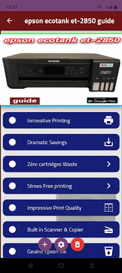 This mobile application is a manual for the epson ecotank et 2850. It is not an official application or approach from it.