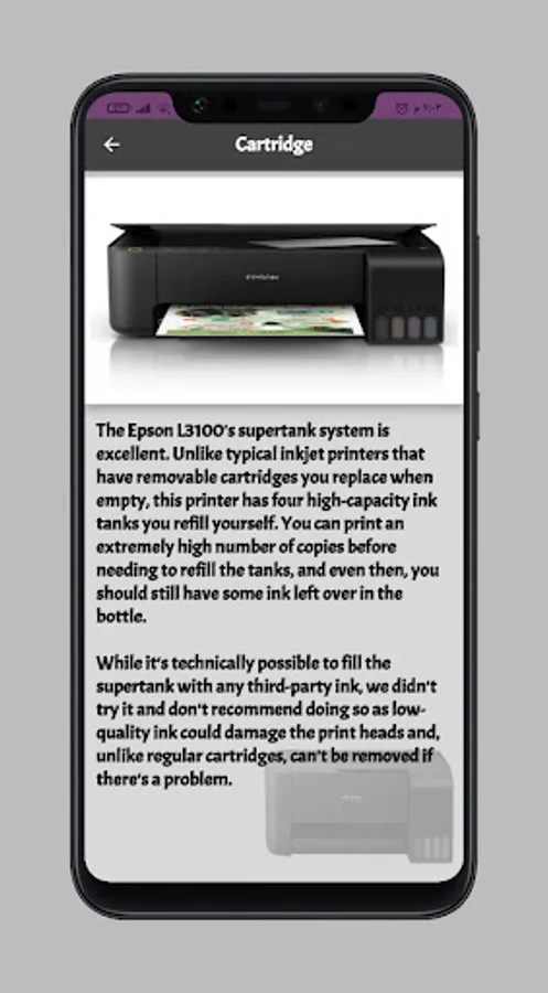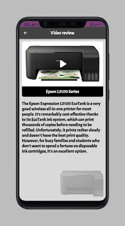 Through the application Epson L3100 Series Printer you can learn about many specifications and features of a printer Epson L3100 Series Printer, and the application also includes an application Epson L3100 Series Printer on the video, features and specifications easily