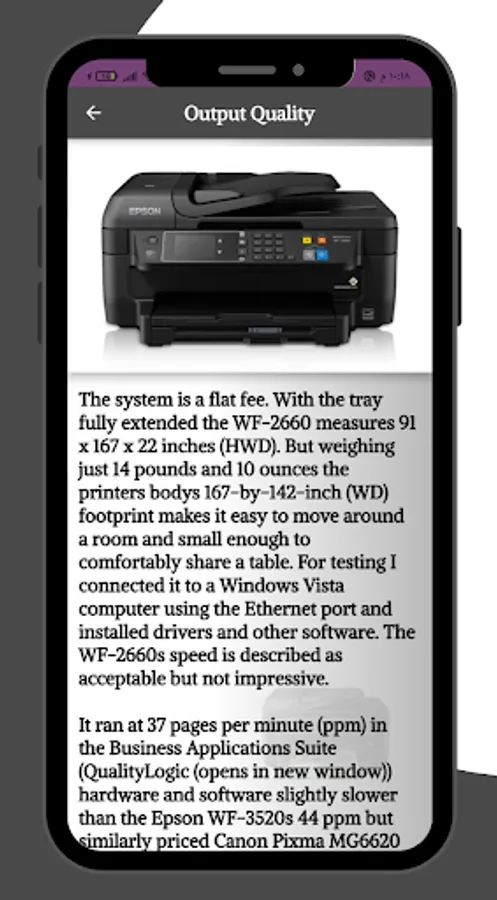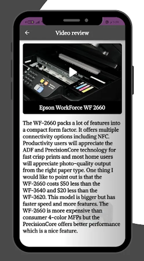 Through the application Epson WorkForce WF2660 you can learn about many specifications and features of a printer Epson WorkForce WF2660, and the application also includes an application Epson WorkForce WF2660 on the video, features and specifications easily