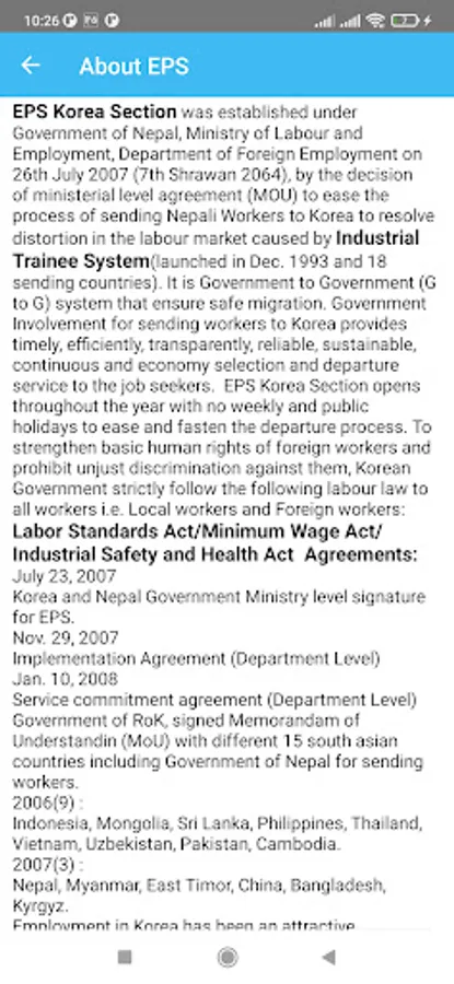 EPS Korea Section was established under Government of Nepal, Ministry of Labour and Employment, Department of Foreign Employment on 26th July 2007 (7th Shrawan 2064), by the decision of ministerial level agreement (MOU) to ease the process of sending Nepali Workers to Korea to resolve distortion in the labour market caused by Industrial Trainee System(launched in Dec. 1993 and 18 sending countries). It is Government to Government (G to G) system that ensure safe migration. Government Involvement for sending workers to Korea provides timely, efficiently, transparently, reliable, sustainable, continuous and economy selection and departure service to the job seekers.