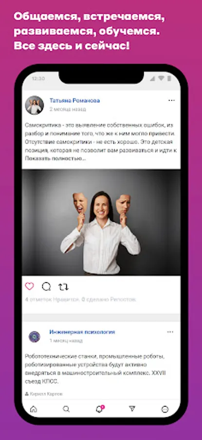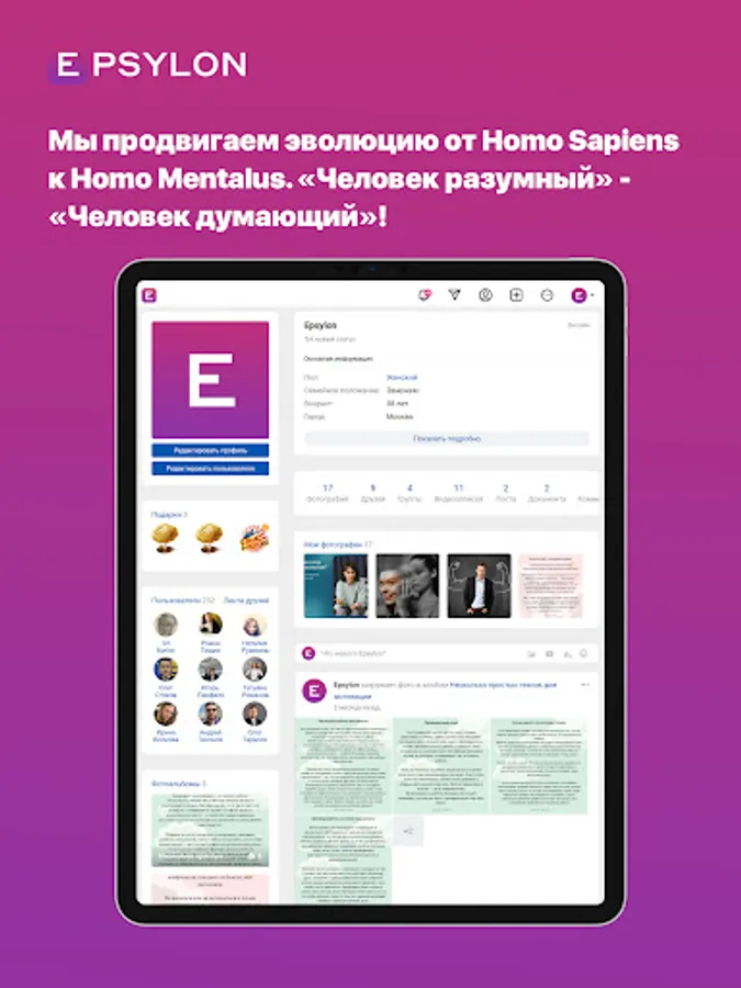 To unite people by interests, creating a high-quality environment for communication and useful leisure. We create technologies and tools for easy access and easy use of thematic communication for all people and professionals. We bring together people who are passionate about psychology! We are advancing the evolution from Homo Sapiens to Homo Mentalus. "Reasonable Man" - "Thinking Man"!