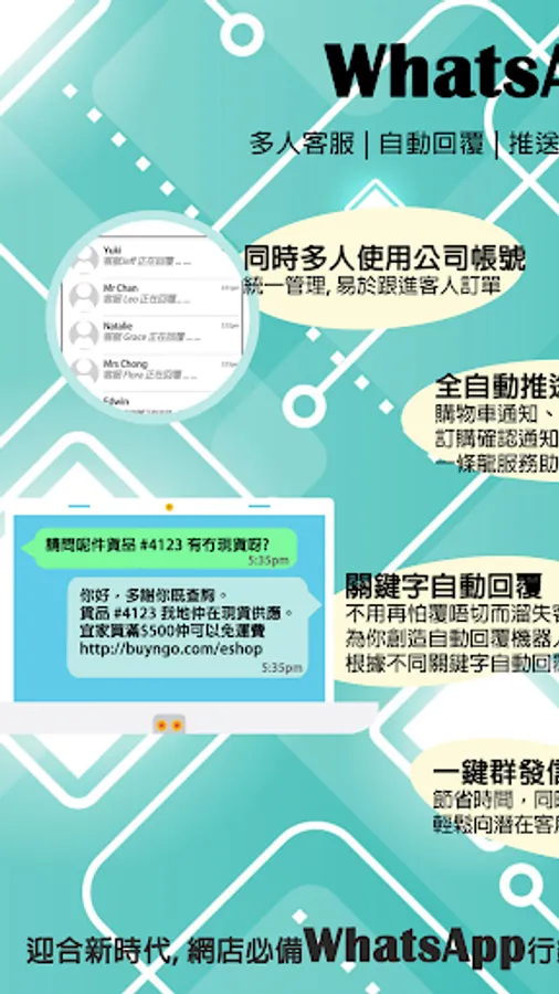 1. Automatic reply message: 24 hours to help you automatically reply to inquiries, non-office hours can continue to do business