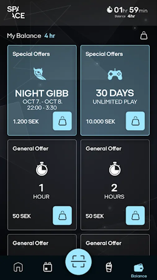 Check in frequently in the Space Gaming App to take part of exciting events and offers that happens at Space