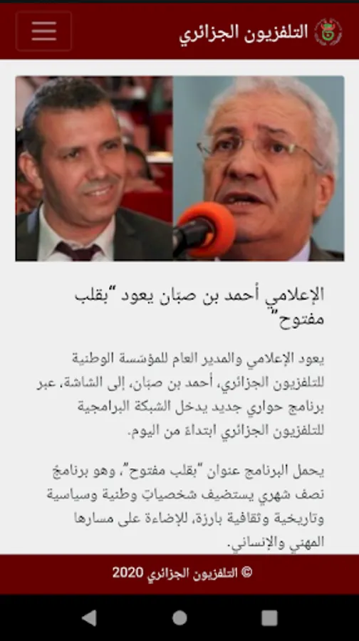 - Streaming (7/7 and 24/24) of the various TV channels of the Algerian Public Television Company.