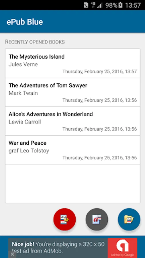 'ePub Blue’ app is a reader for books delivered in the 'ePub' format standard (books with ‘epub’ file extension)