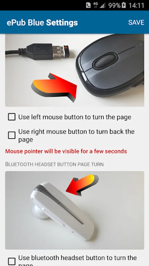 - Turn the page remotely, not only by touching the screen. When the phone is on the desk, in a support, on the bed, or, for the case when the text is big and the pages need to be turned often, choose to turn the pages with the volume buttons (from the headset), the buttons of the wireless mouse or the button on the Bluetooth headset