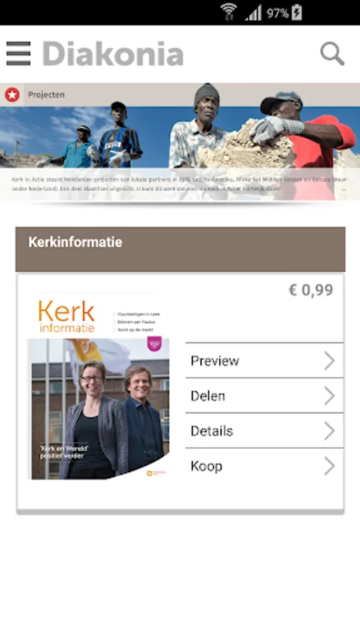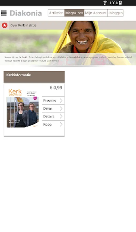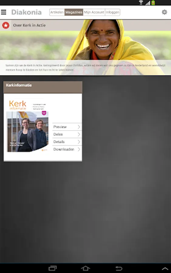 The Church in Action Deacon app is a digital notebook for deacons of the Protestant Church in the Netherlands. The kiosk is the magazine for deacons, Diakonia, and to find articles and brochures on topics where deacons come into contact, including poverty, health care, refugees and sustainable living. All relevant information for deacons to one digital place.