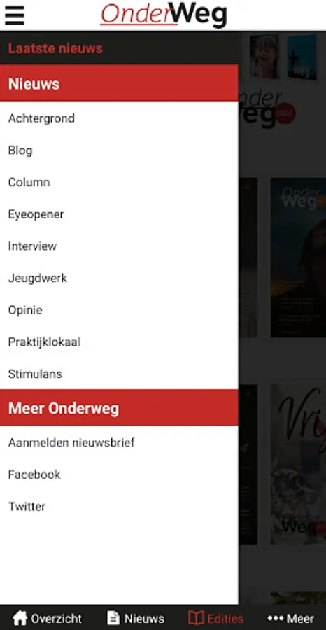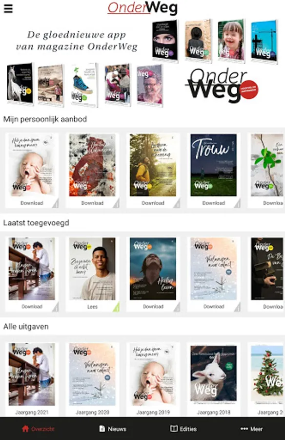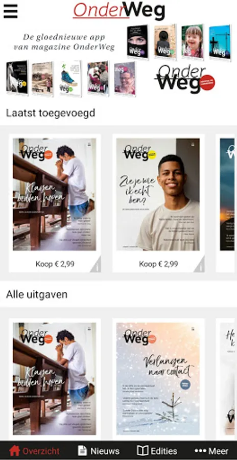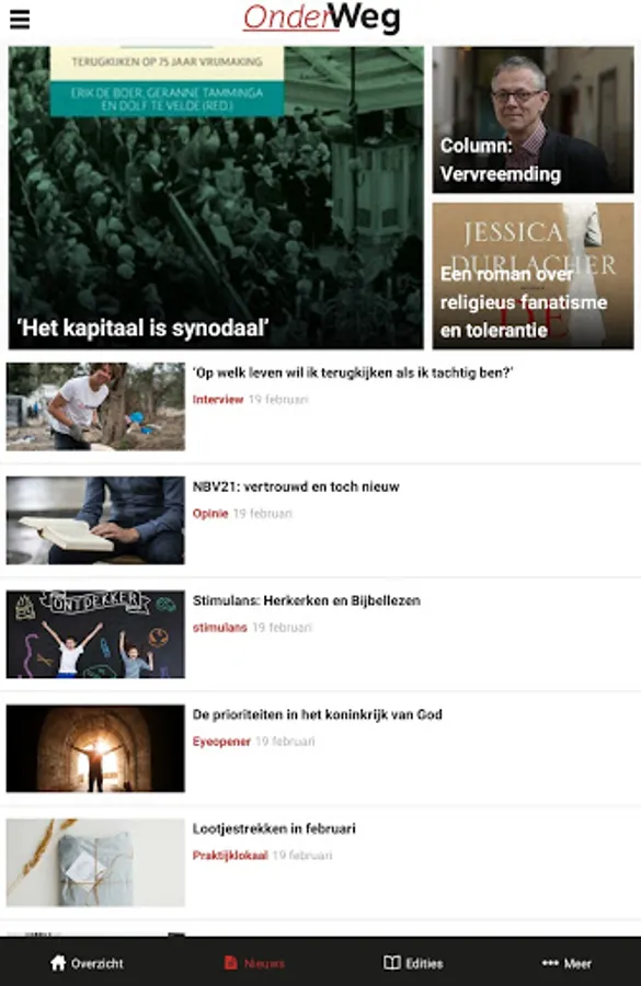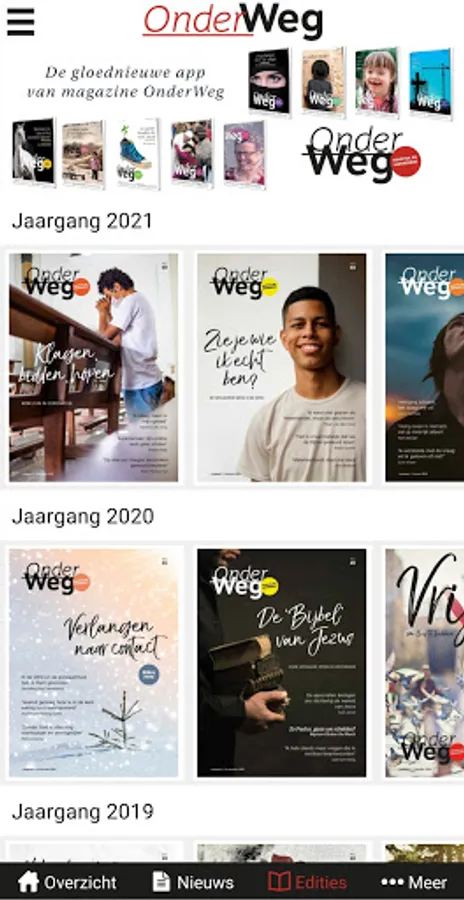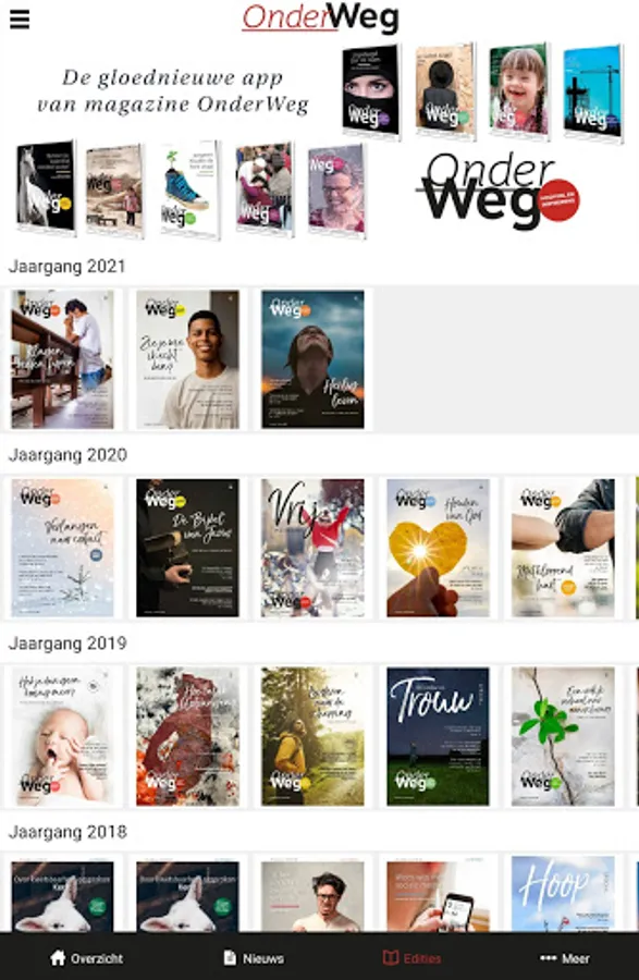 Magazine OnderWeg is published every 3 weeks. You can read it via the 'OnderWeg online' app or take out a paper subscription, which also gives you access to the app. See also www.onderwegonline.nl.