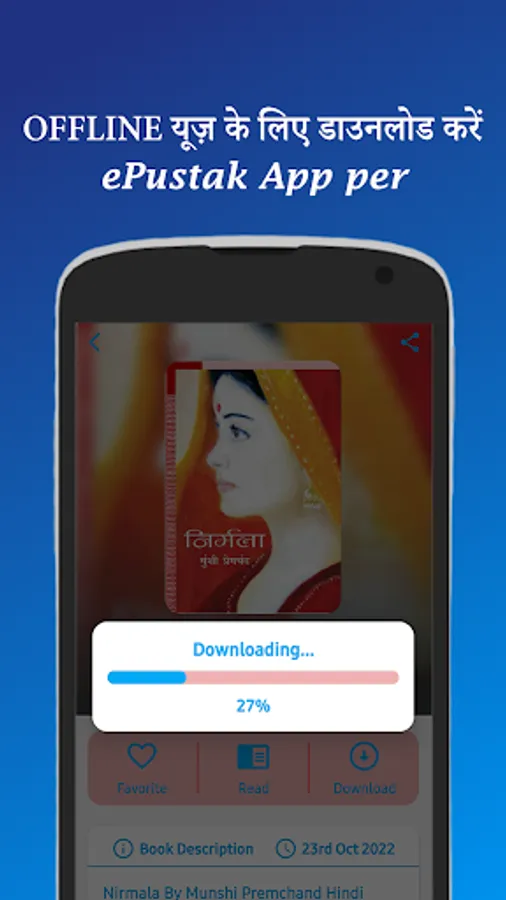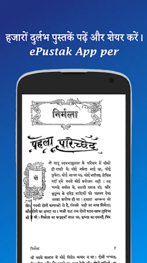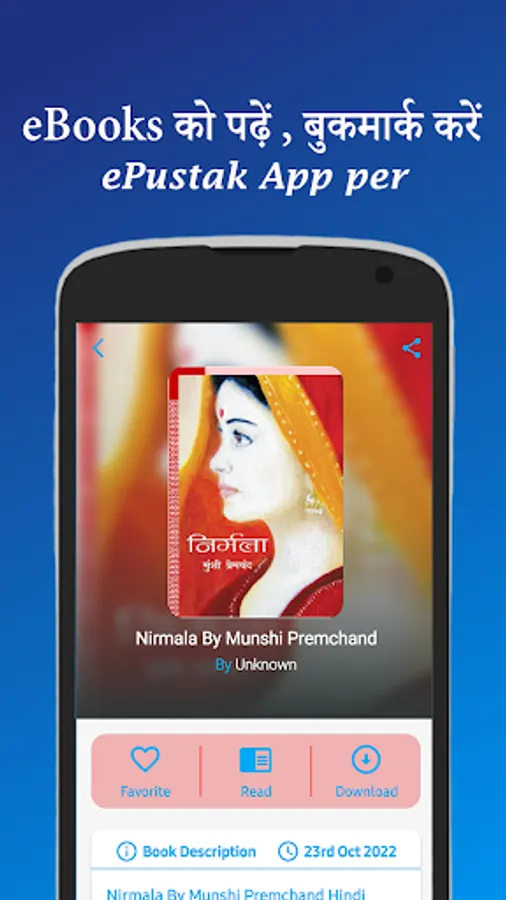 Read download free eBooks online. Through this, you can join the works of precious gems of Hindi literature like Premchand, Ramdhari Singh Dinkar, Nirala, Kabir, Tulsi, Kalidas, Mohan Rakesh, Agnay, Bachchan, Mahadevi Verma, Rahul Sankrityayan, Dharamvir Bharti, Maithili Sharan Gupt, etc. Even new writers can get their books published on our app or site.
