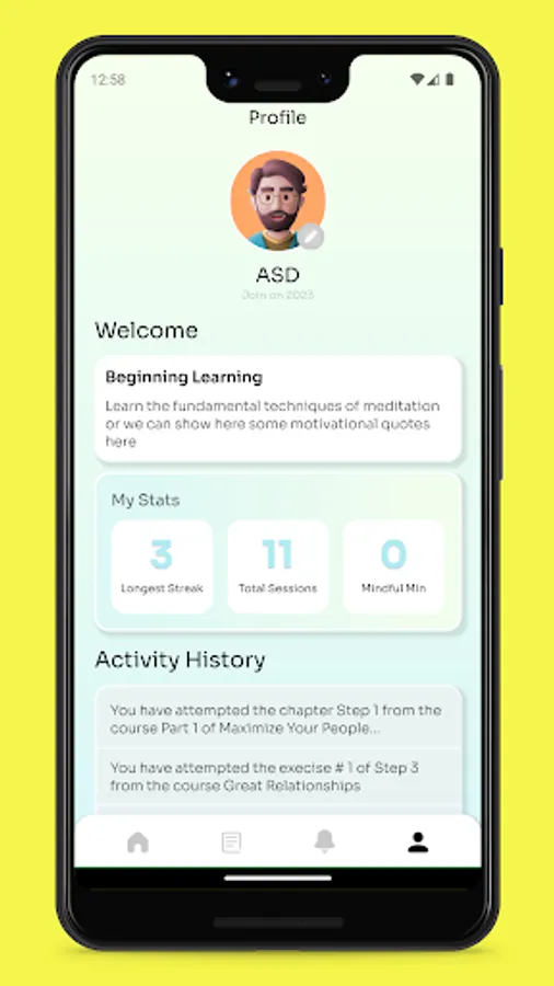 Activity History: Review your recent activities within the app to stay informed and motivated on your journey toward emotional intelligence mastery.