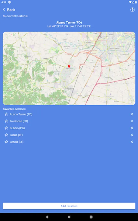 This APP works for Eqs in Italy and, unlike the others on the market, allows you to receive alerts BEFORE the arrival of a strong shock, because it is not based on the detection of the seismic waves just caused by the earthquake that has already occurred, but on astronomical algorithms and known seismic sequences, which normally they anticipate the seismic trigger of the strongest quake.
