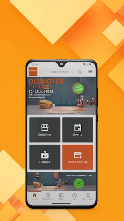 Providing access to DOMOTEX Turkey Exhibition information held at ANFAS Expo Center in Antalya,Türkiye, the app offers a unique fair experience with superior features such as detailed exhibitor search, event calendar and electronic badge.