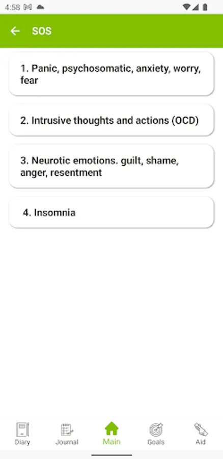 If a panic attack, anxiety, worry, obsessions, neurotic emotions, etc. catch you off guard, click on the "SOS" button, select the section you need and follow clearly structured recommendations.