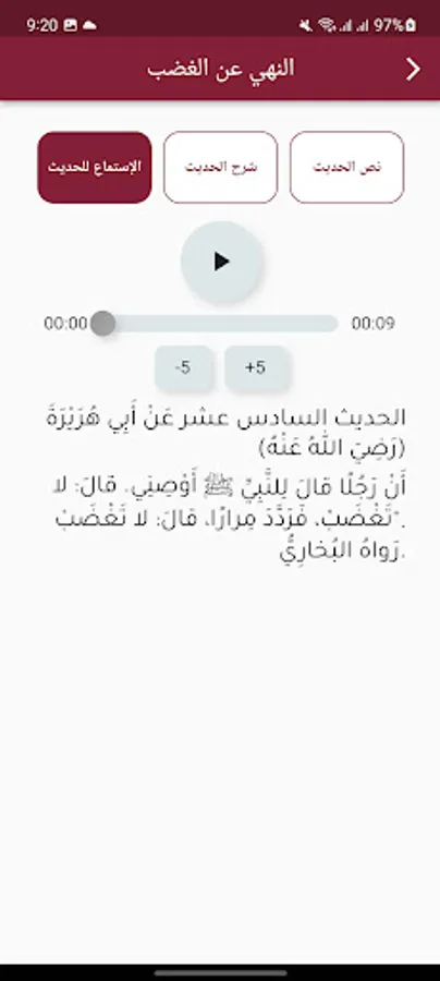 The Nawawi Forty Application is an application that displays the Forty Nawawi hadiths in a detailed manner and with an explanation of each hadith and the ability to listen to the entire hadiths or passages