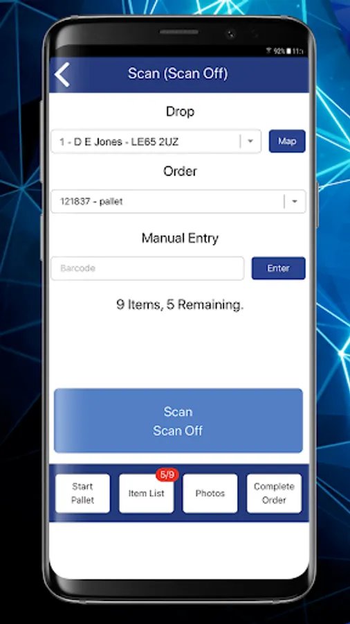 Then send your delivery loads to mobile devices and barcode scan your products at each process, e.g. scan on to the delivery van, scan off at the customer’s delivery address.